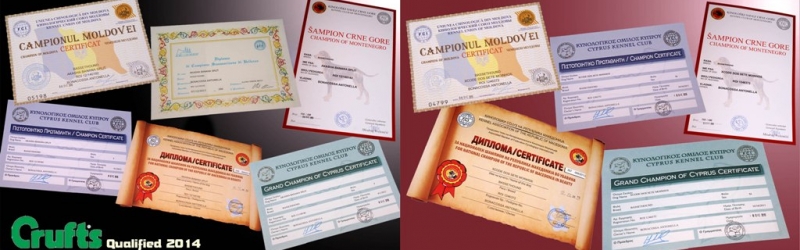 Great result for our XCode dos Sete Moinhos (aka Zé) and Akasha Banana Split (aka Nanà) who won in San Marino in only three days, respectively, well 5 and 06 titles! XCode, after having passed the examination of 6 different experts Judges became Champion of beauty of Moldova, Cyprus, Macedonia and Montenegro, and also Grand Champion of Cyprus of beauty! Nanà got the same titles with also the title of Champion of beauty of San Marino and qualification for the prestigious International dog show CRUFTS 2014 in Birmingham. A special thank to the Judges Mile Aleksoski (MKD) Miodrag Vretenicic (MNE) Boris BAIC (SLO) Pero Bozhinovsk (MKD) Sanja Vretenicic (MNE) for appreciating the quality of our dogs.